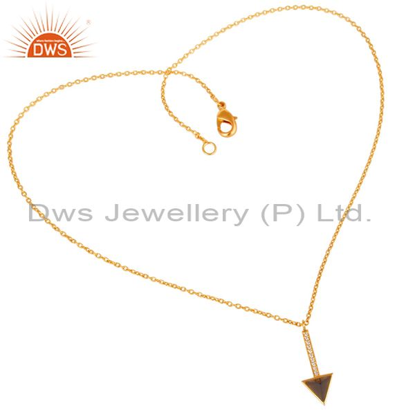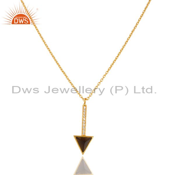Smoky Topaz Triangle Cut 14 K Gold Plated 92.5 Sterling Silver Chain Pendent