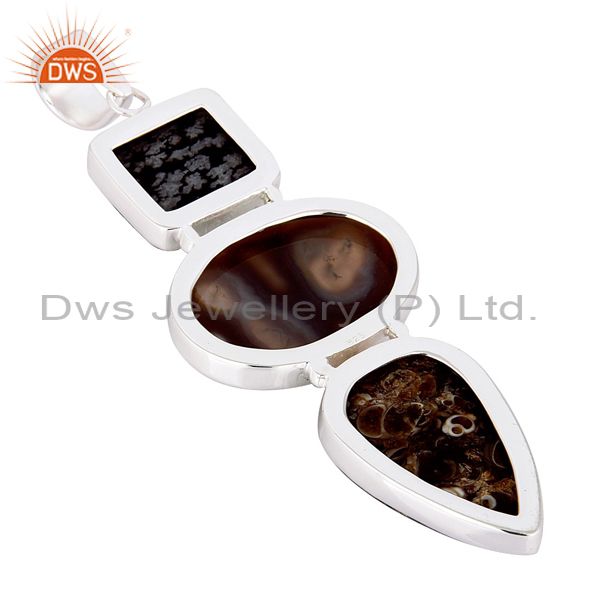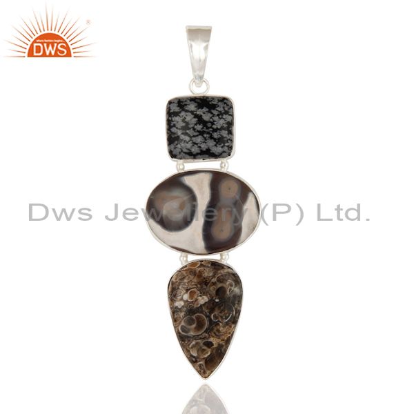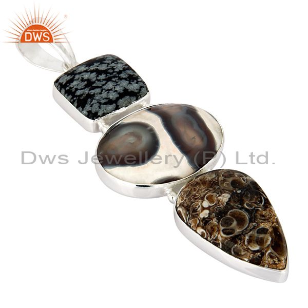 Snowflake Obsidian, Solar Quartz And Turritella Agate Sterling Silver Pendant