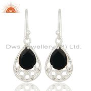 Solid 925 Sterling Silver Black Onyx Gemstone Solitaire Pendant With White Topaz