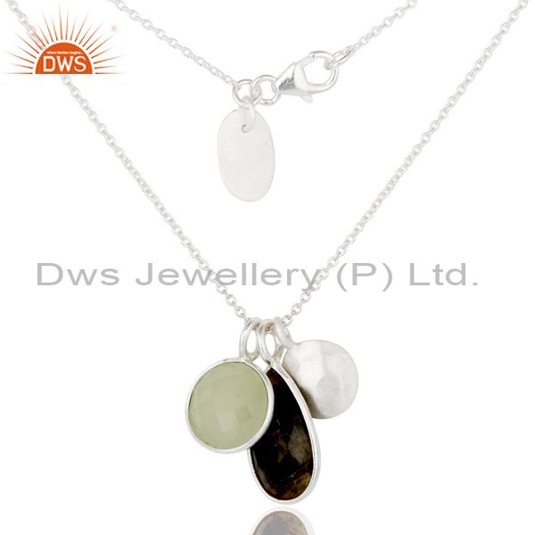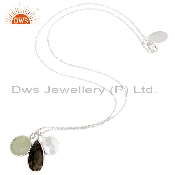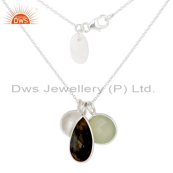 Solid 925 Sterling Silver Chalcedony & Labradorite 3 Set Gemstone Chain Pendant