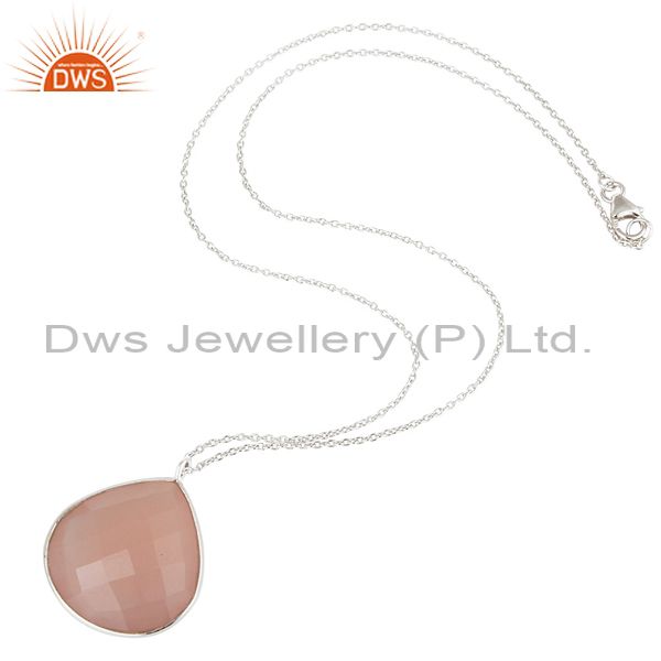 Solid 925 Sterling Silver Chalcedony Gemstone Bezel Set Pendant With Chain
