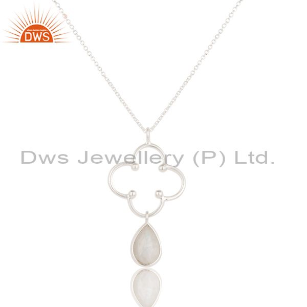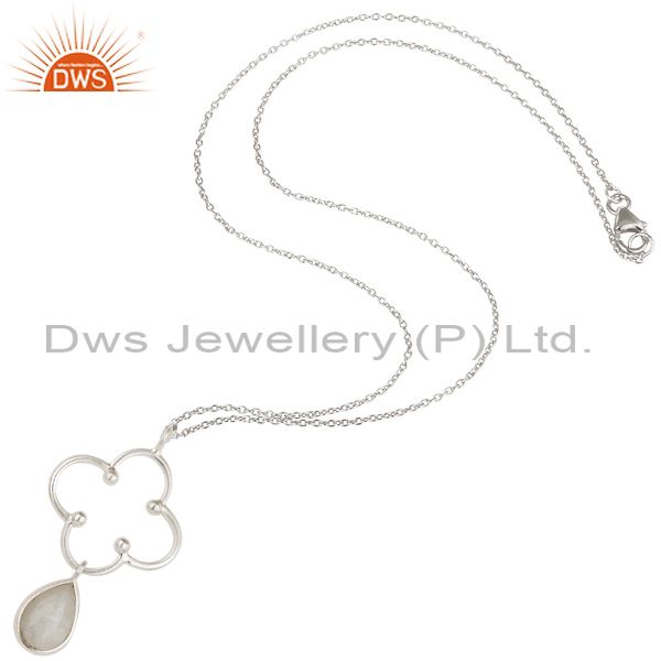 Solid 925 Sterling Silver Handmade Rainbow Moonstone Bezel Set Chain Pendant