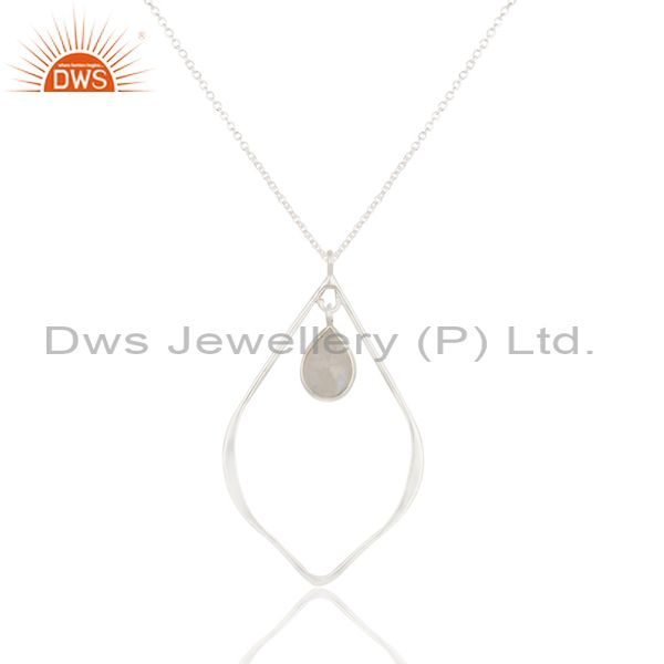 Solid 925 Sterling Silver Rainbow Moonstone Bezel Set Chain Pendant Necklace