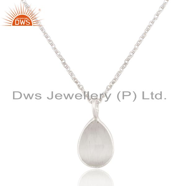 Solid 925 Sterling Silver White Moonstone Bezel Set Drop Pendant With Chain