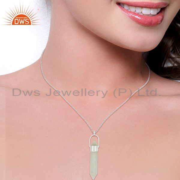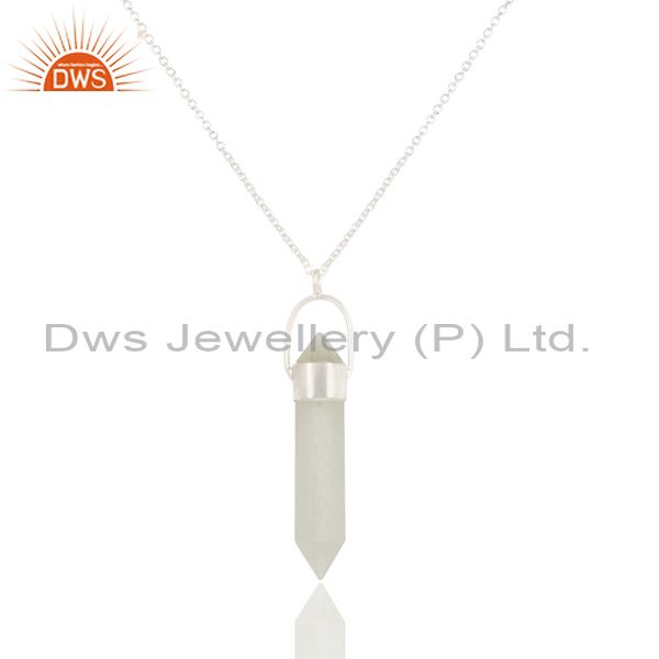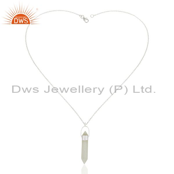 Solid Silver Plated Brass White Moonstone Double Sided Point Pendant Necklace