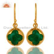 Solid Sterling Silver Green Aventurine Gemstone Pendant Necklace- Gold Plated