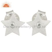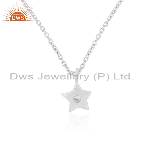 Solid Sterling Silver Handmade Star Design White Topaz Pendant with Chain