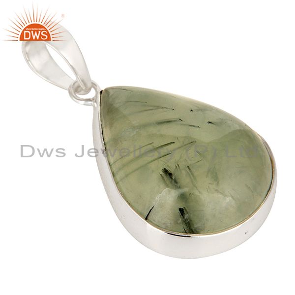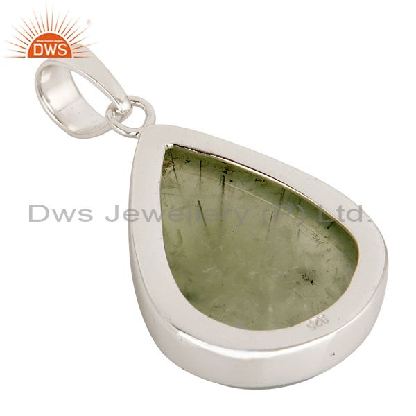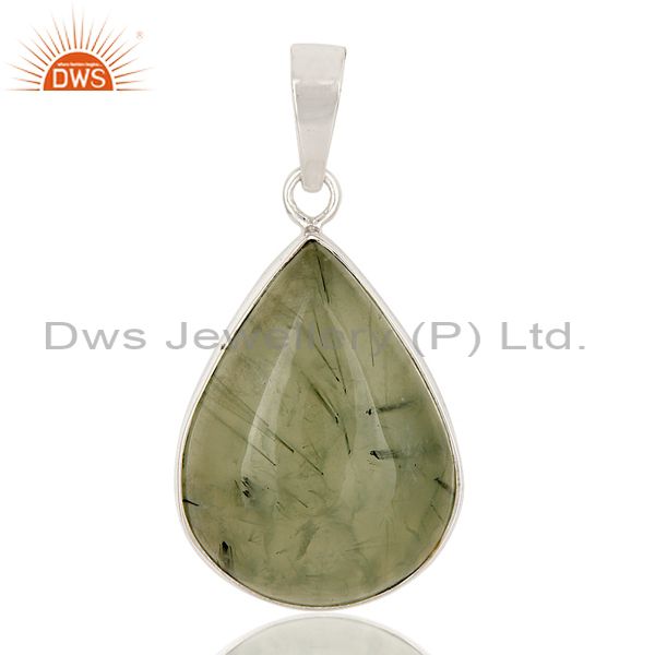 Solid Sterling Silver Natural Prehnite Gemstone Bezel Set Handmade Drop Pend
