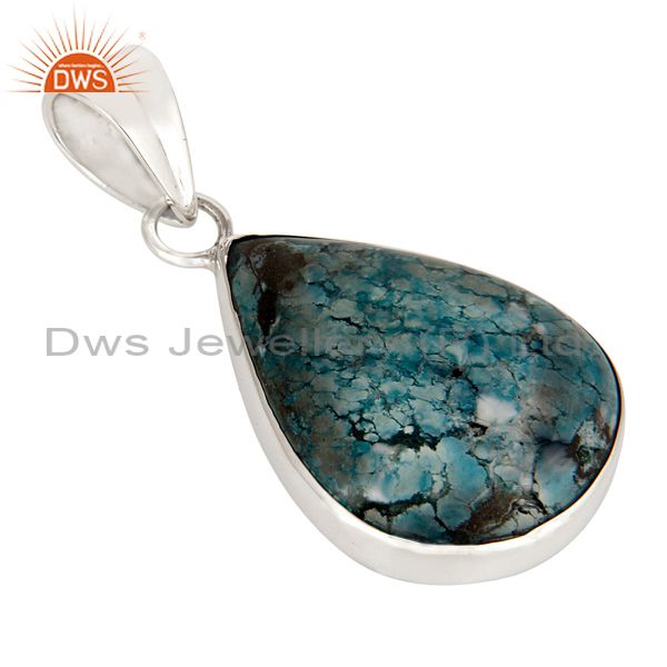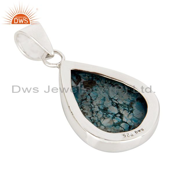 Solid Sterling Silver Natural Turquoise Gemstone Bezel Set Handmade Drop Pendant