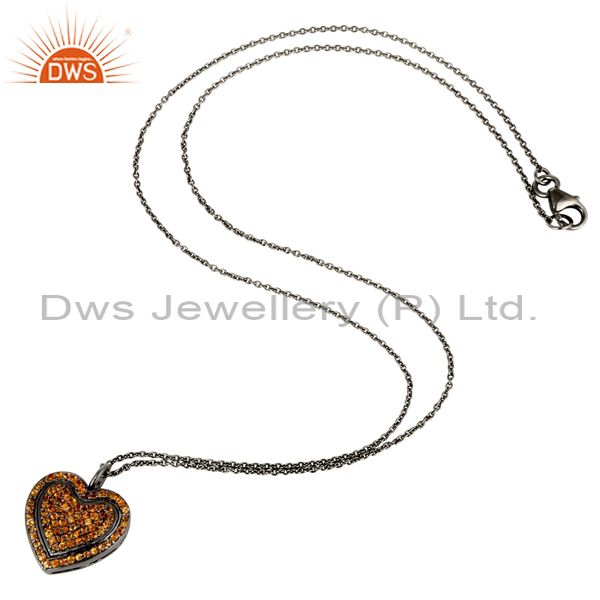 Spessartite Heart Shape Pendant 925 Sterling Silver Necklace