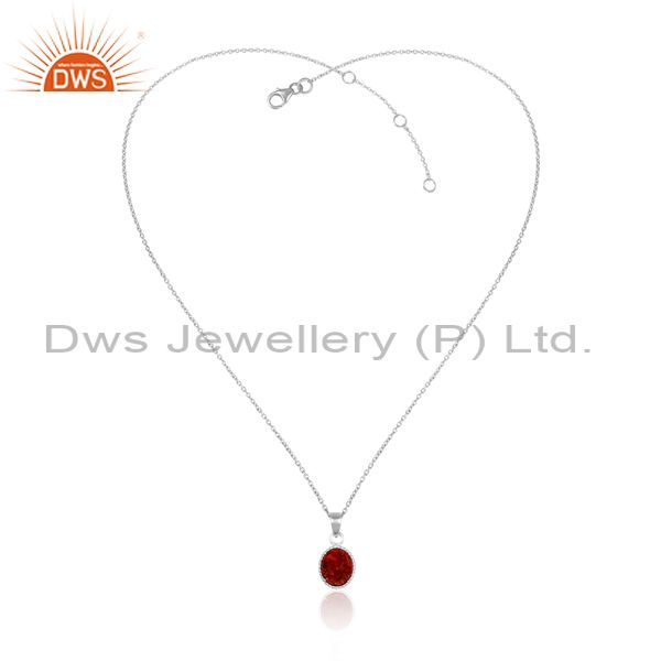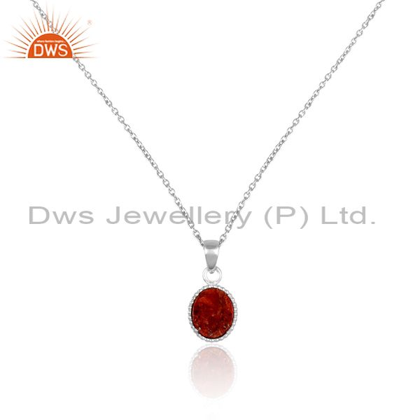 Sponge Coral Coin Set Pendant And Fine Sterling Silver Chain