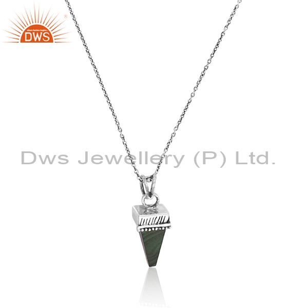 Square Malachite Pyramid Set Oxidized 925 Silver Necklace
