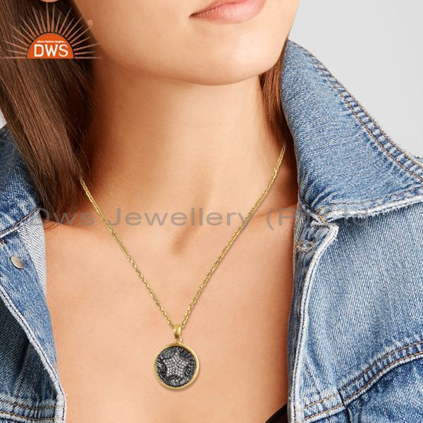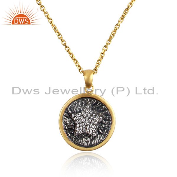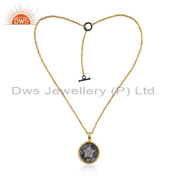 Star Design Rhodium and Gold On Silver Adjustable Chain Necklace