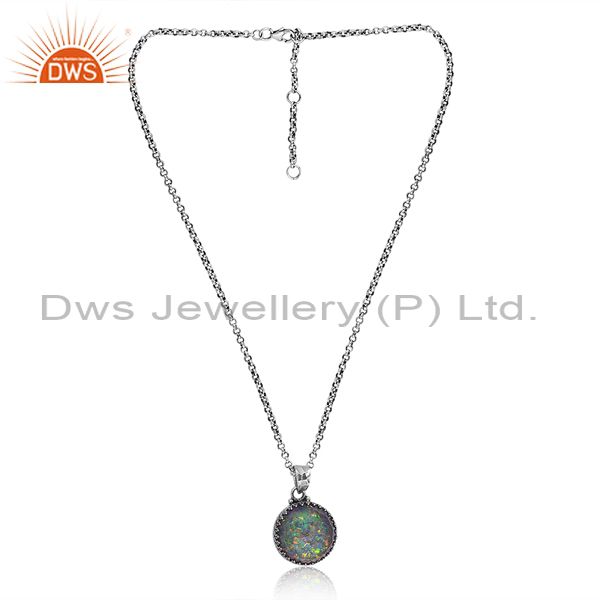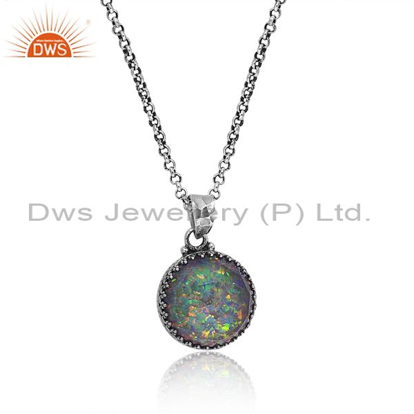 Sterling Chain And Pendant With Synthetic Green Opal Stone