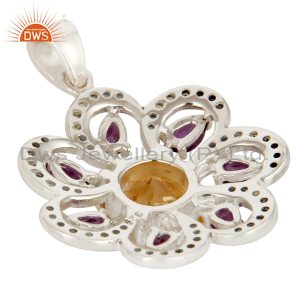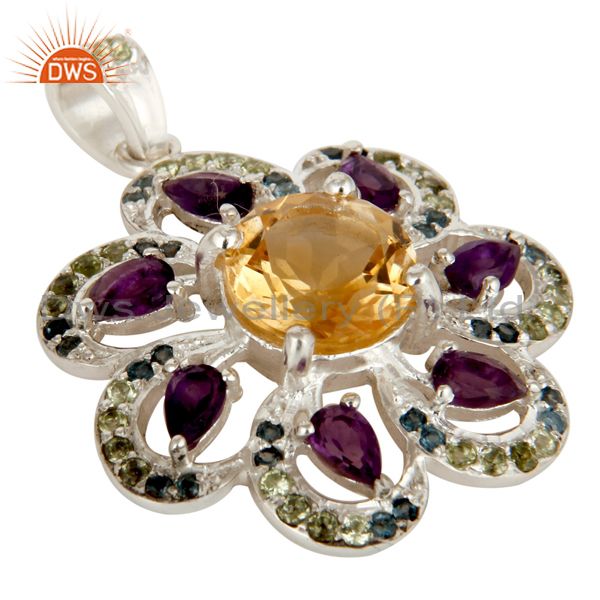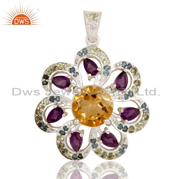 Sterling Silver Amethyst, Citrine And Blue Topaz Gemstone Pendant With Peridot
