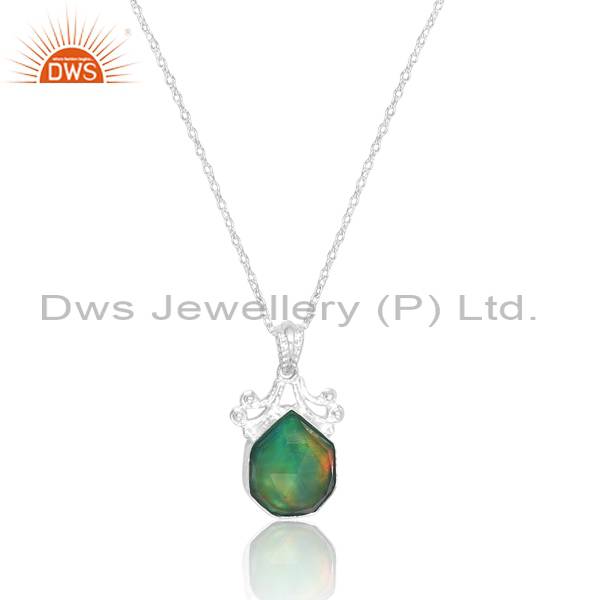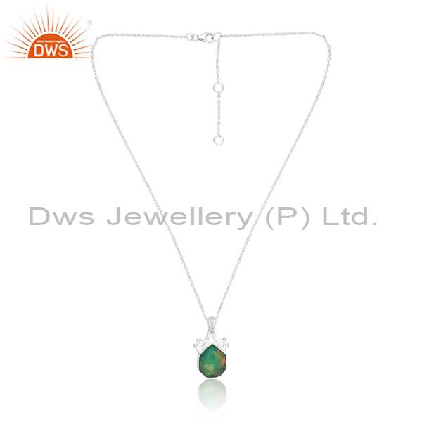 Sterling Silver Aurora Opal Green Trendy Pendant Necklace