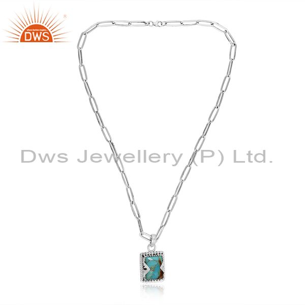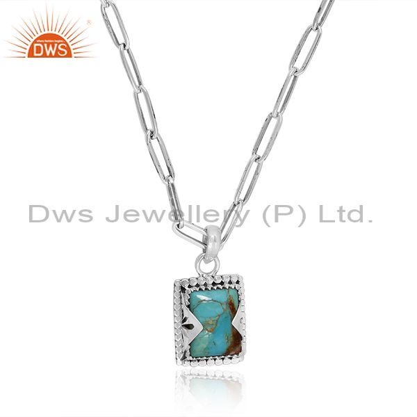 Sterling Silver Chain And Kingman Turquoise Baguette Pendant