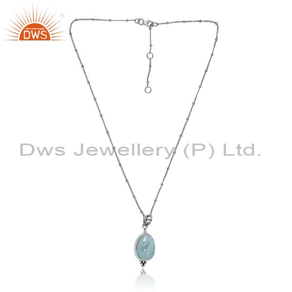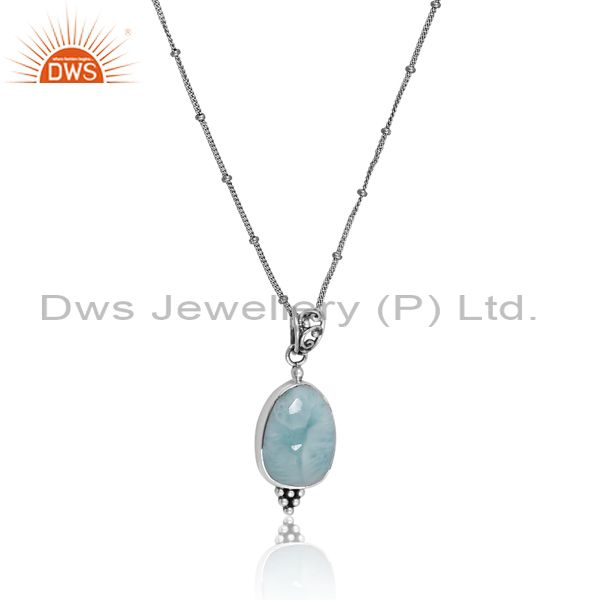 Sterling Silver Chain And Pendant With Larimar Cabochon Gem