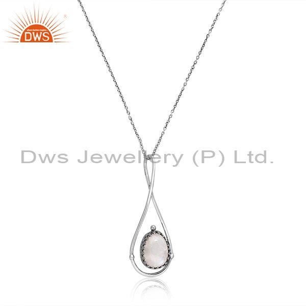 Sterling Silver Chain And Pendant With Rainbow Moonstone
