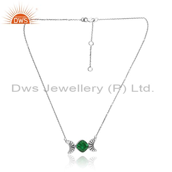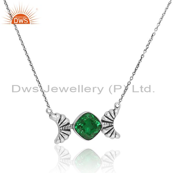 Sterling Silver Chain With Doublet Zambian Emerald Stone