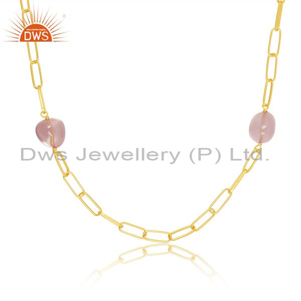 Sterling Silver Chain With Unshaped Rose Quartz Pendants