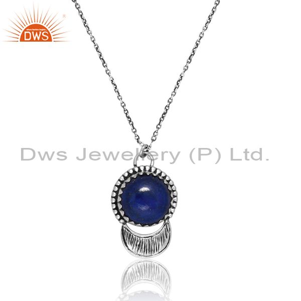 Sterling Silver Clear Round Cut Lapis Drop And Chain Women