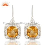 Sterling Silver Cushion Cut Citrine Gemstone Solitaire Pendant With White Topaz