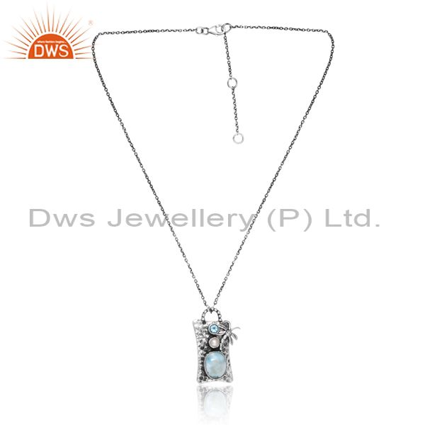 Sterling Silver Hot Pendant And Chain Pearl, Topaz, Laminar