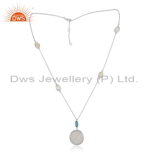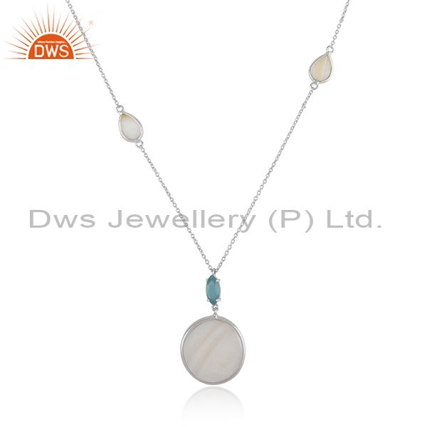 Sterling Silver Necklace With Mother Of Pearl Blue Chalcedony
