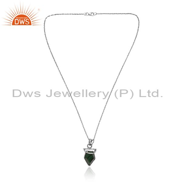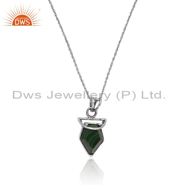 Sterling Silver Oxidized Pendant & Necklace With Malachite