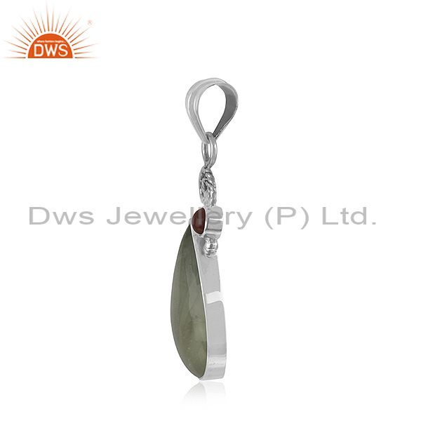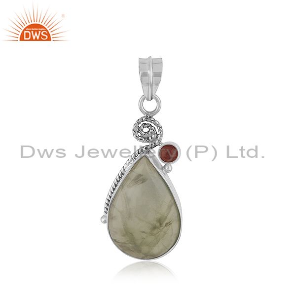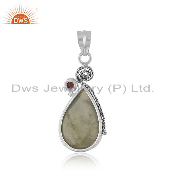 Sterling Silver Oxidized Prehnite Garnet Gemstone Pendant Jewelry
