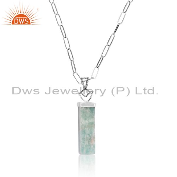 Sterling Silver Pendant And Necklace Made Of Amazonite