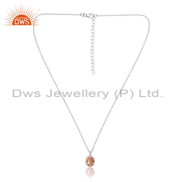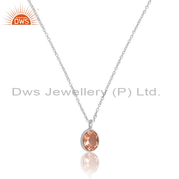 Sterling Silver Pendant And Necklace With Morganite Oval Cut