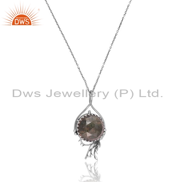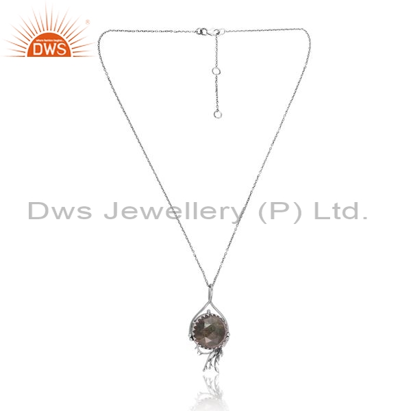 Sterling Silver Pendant And Necklace With Moss Agate Checker