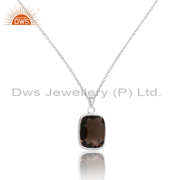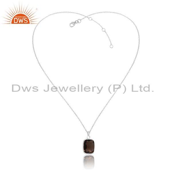 Sterling Silver White Smoky Cut Cushion Pendant & Necklace