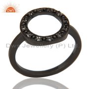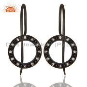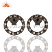 Sterling Silver White Topaz Circle Designs Pendant Necklace With Black Oxidized