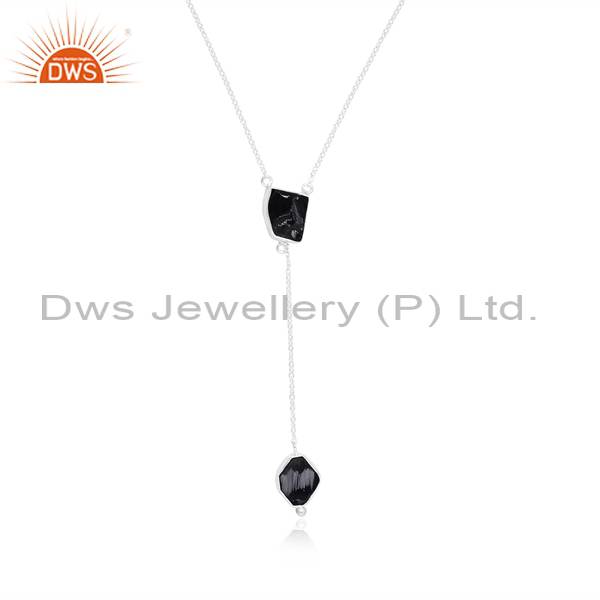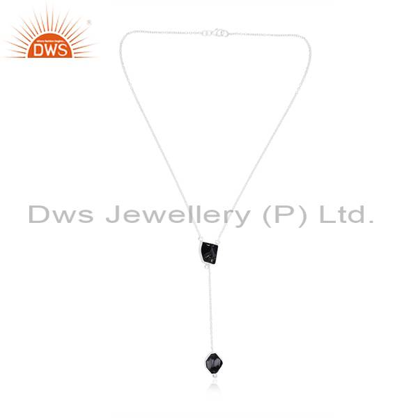 Sterling White Pendant Necklace With Raw Black Obsidian