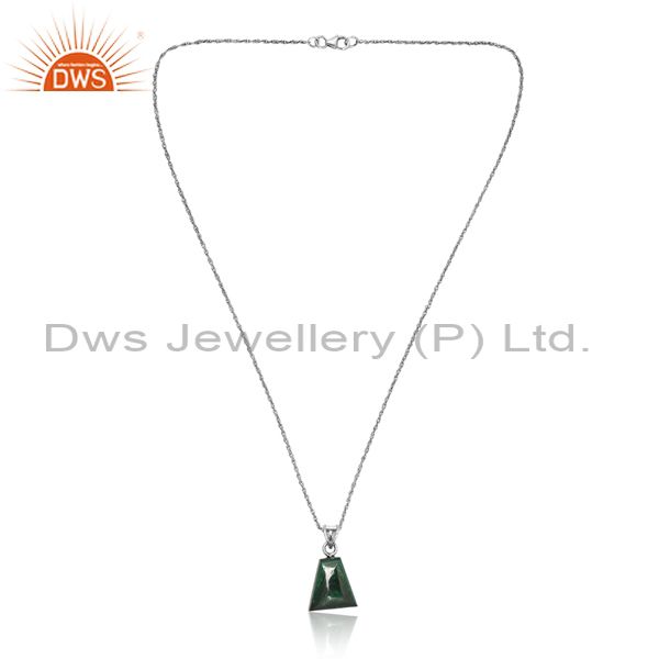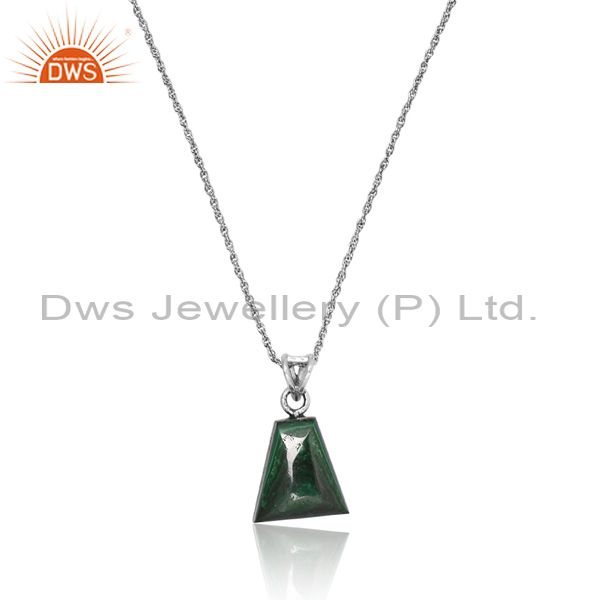 Taper Cut Malachite Set Pendant And Oxidized Silver Chain
