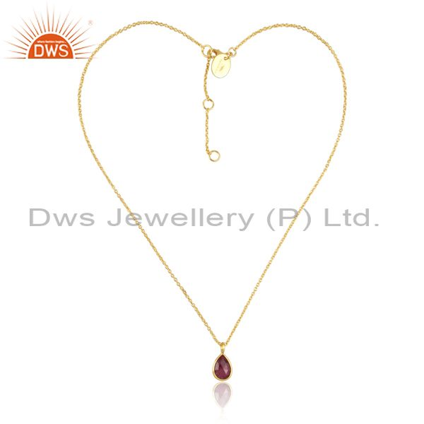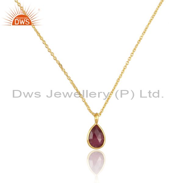 Tear Drop Ruby Set Gold On Sterling Silver Pendant And Chain