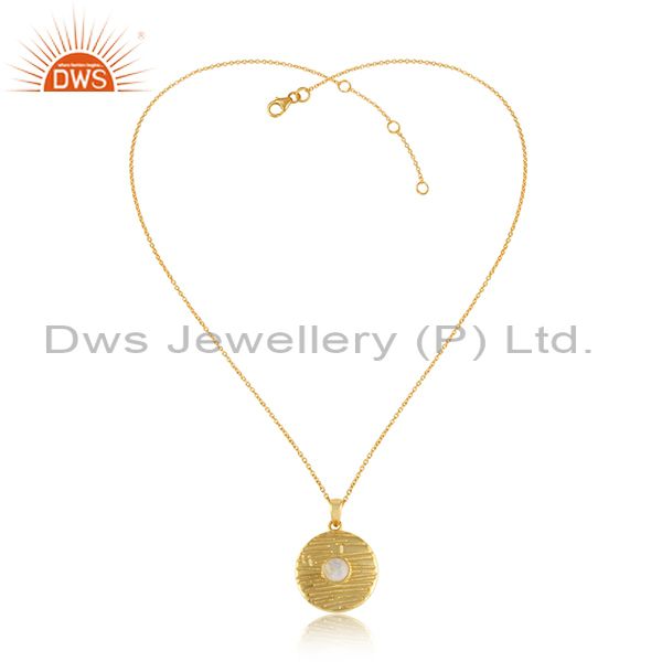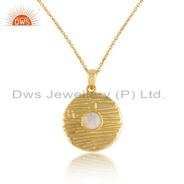 Texture Gold Plated 925 Silver Rainbow Moonstone Chain Pendants
