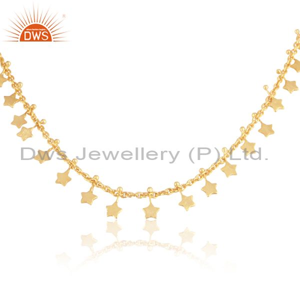 Textured Multi Star Designer Necklace In Yellow Gold On Silver 925