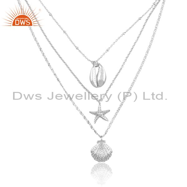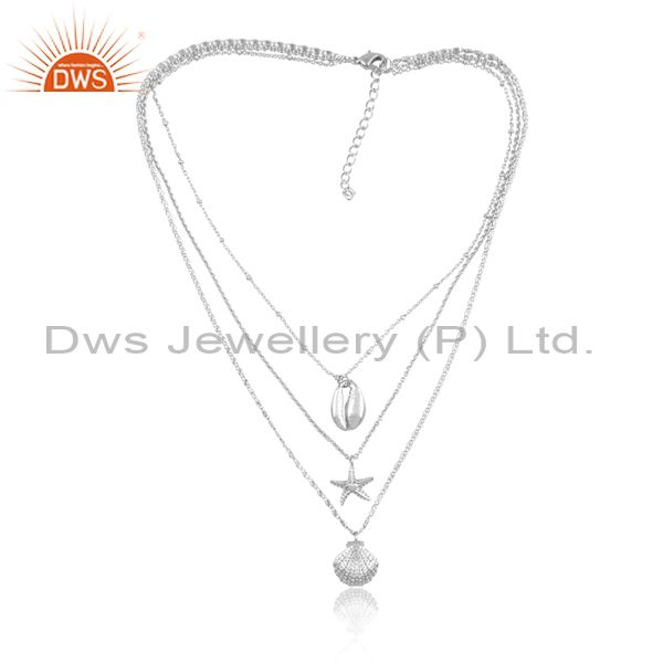 Three Charms Set Fine Brass Triple Chain Designer Necklace