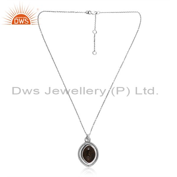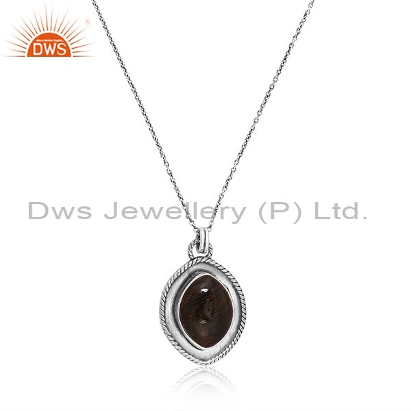 Tiger Eye Blue Oxidized Sterling Silver Pendant & Necklace