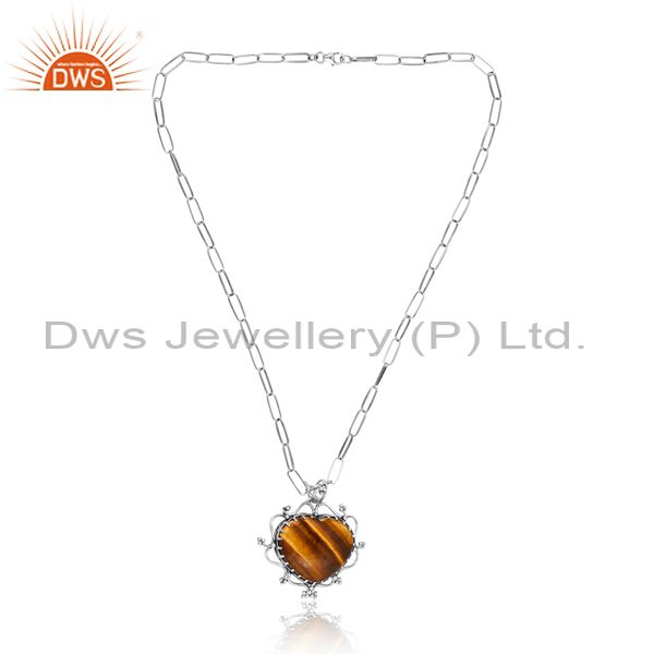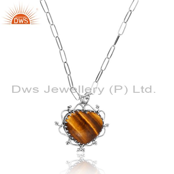 Tiger Eye Yellow Oxidized Sterling Silver Pendant & Necklace