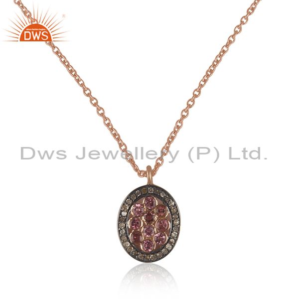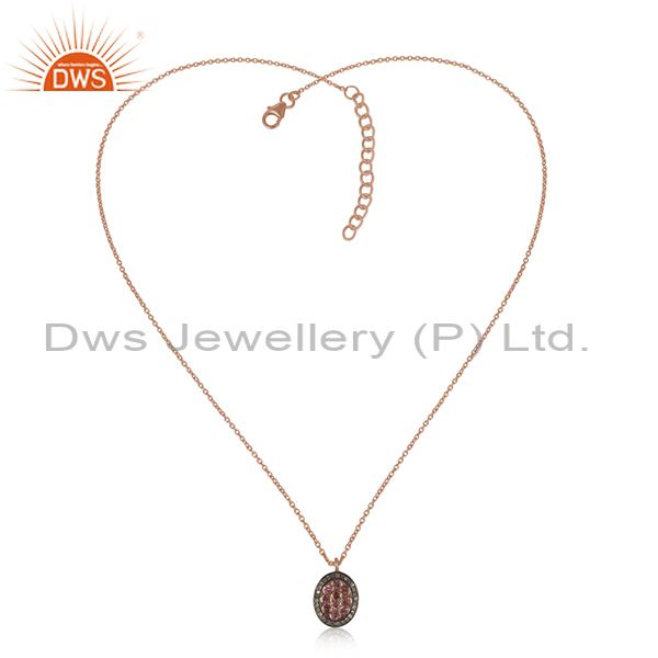 Tourmaline Pave Diamond Rose Gold Plated Silver Chain Pendant Jewelry