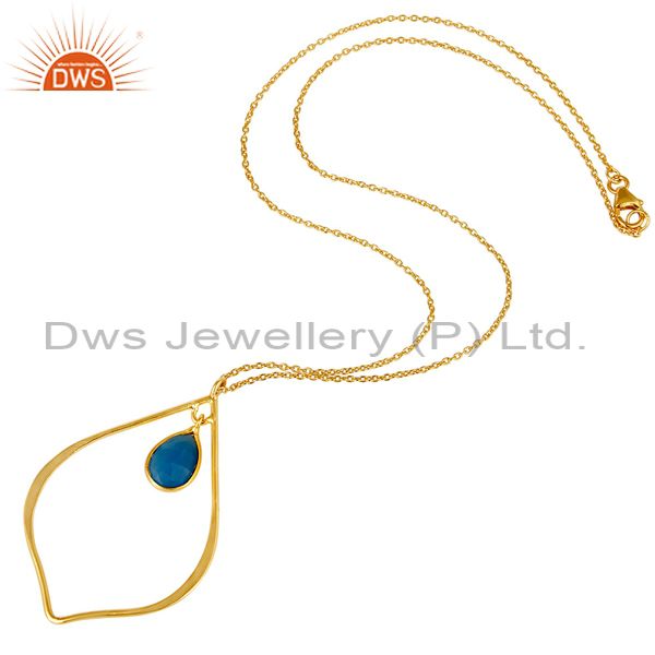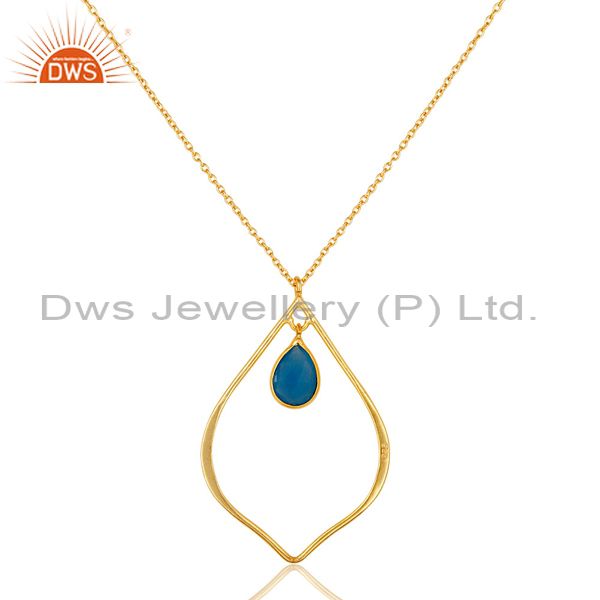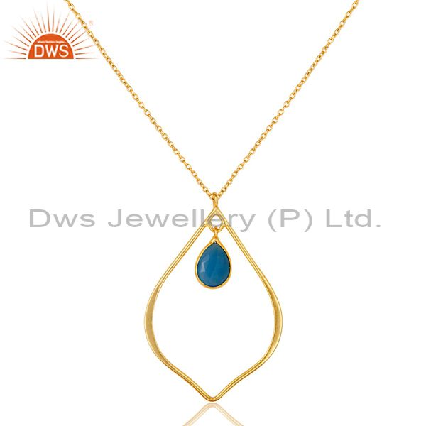 Traditional Design 18K Gold PLated Sterling Silver Pendant Necklace Chalcedony