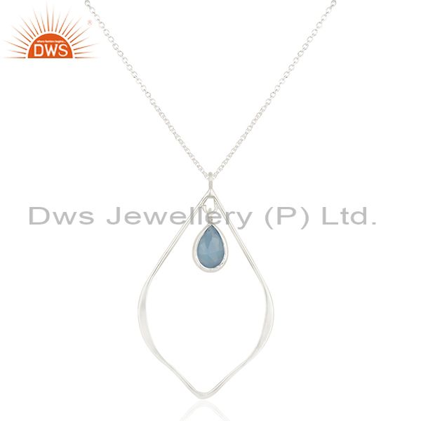 Traditional Design Solid Sterling Silver Dyed Chalcedony Chain Pendant Necklace