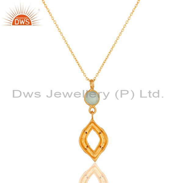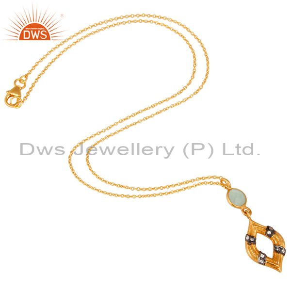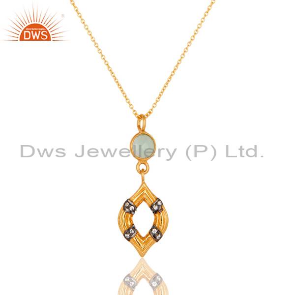 Trendy Necklace With Aqua Chalcedony And Cubic Zirconia