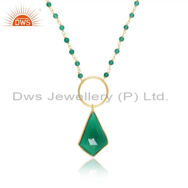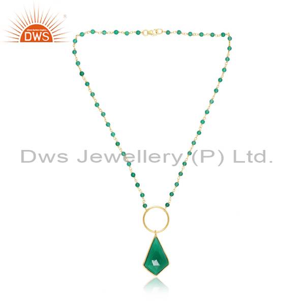 Trendy Necklace With Round Bead And Unshape Green Onyx