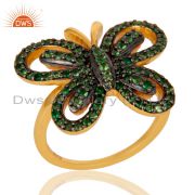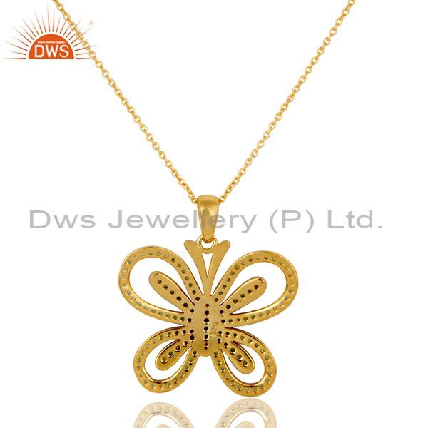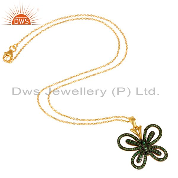 Tsavourite and 18K Gold Plated Sterling Silver Butterfly Pendant Necklace